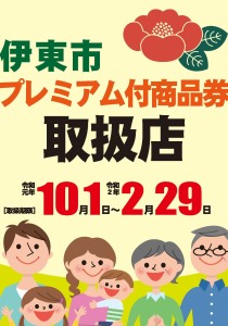 伊東市プレミアム付商品券、取扱っています。